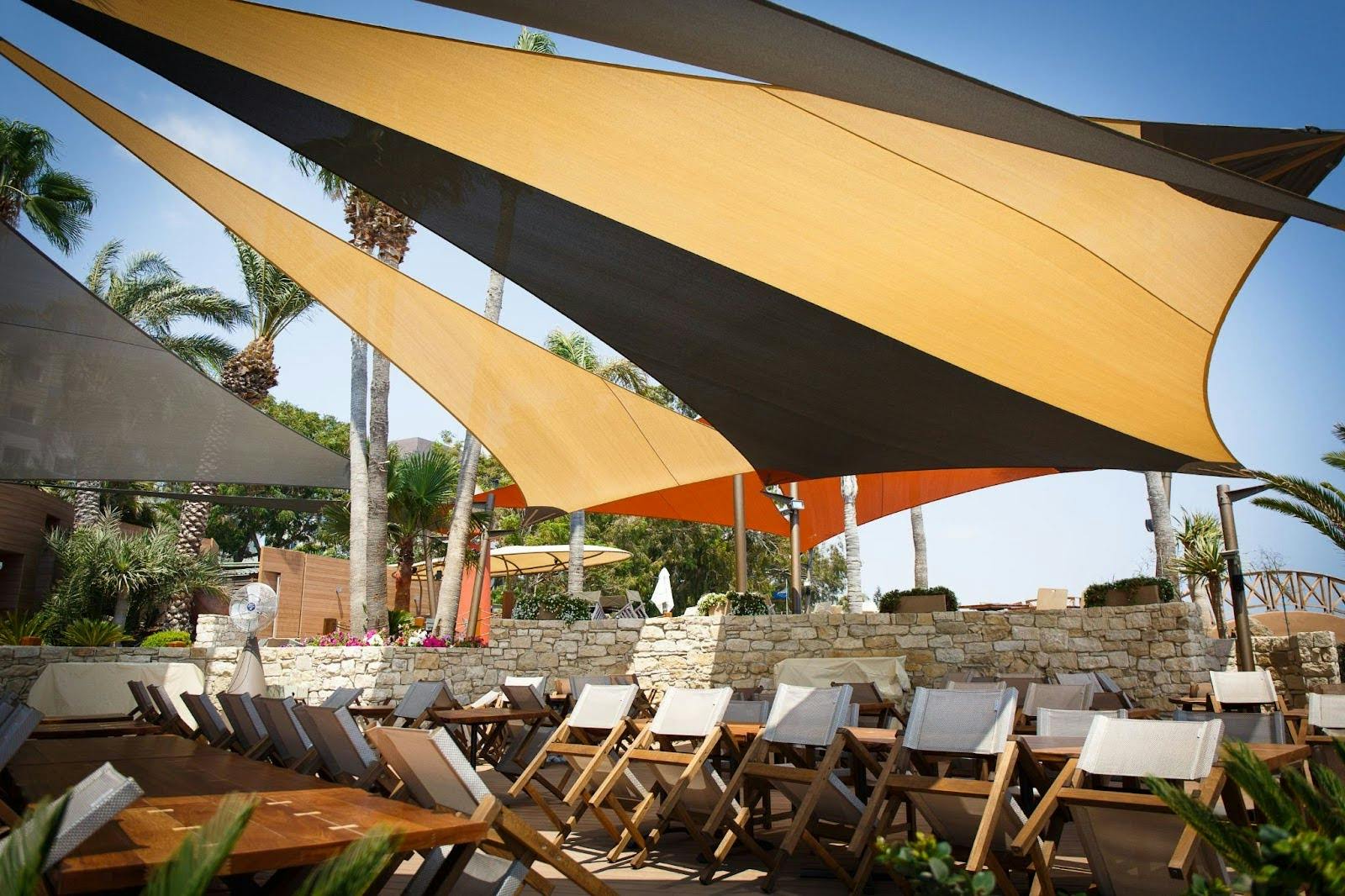 Layered sails in multiple colours create visual interest, and strong anchor points prevent sagging. UV-protective fabrics prolong durability.
